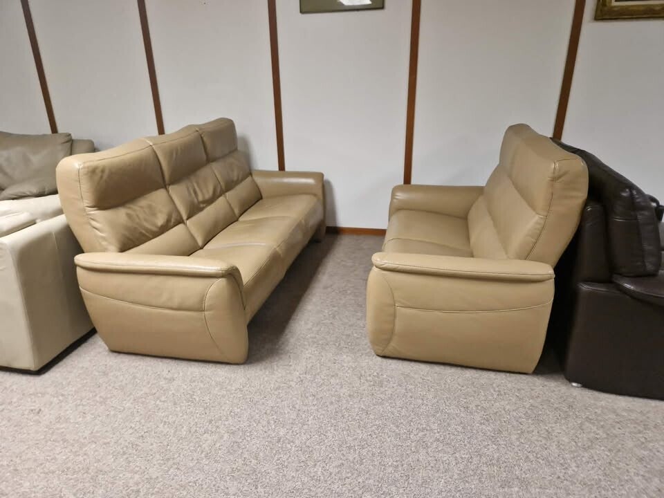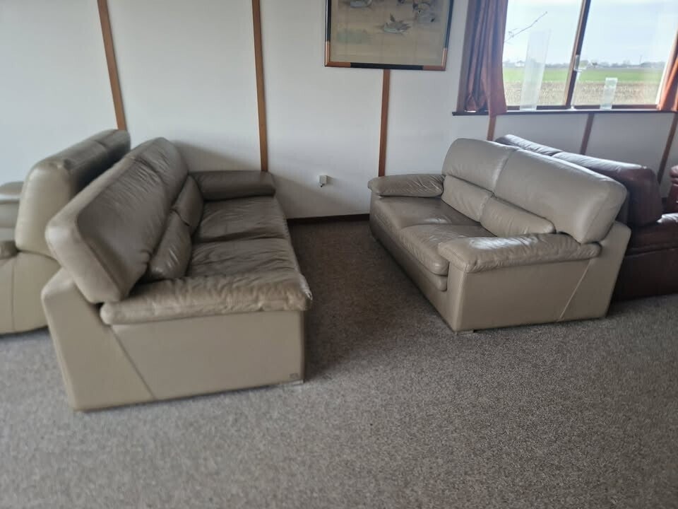 BEIGE BUFFELLEDEREN SALON 3 EN 2 ZIT