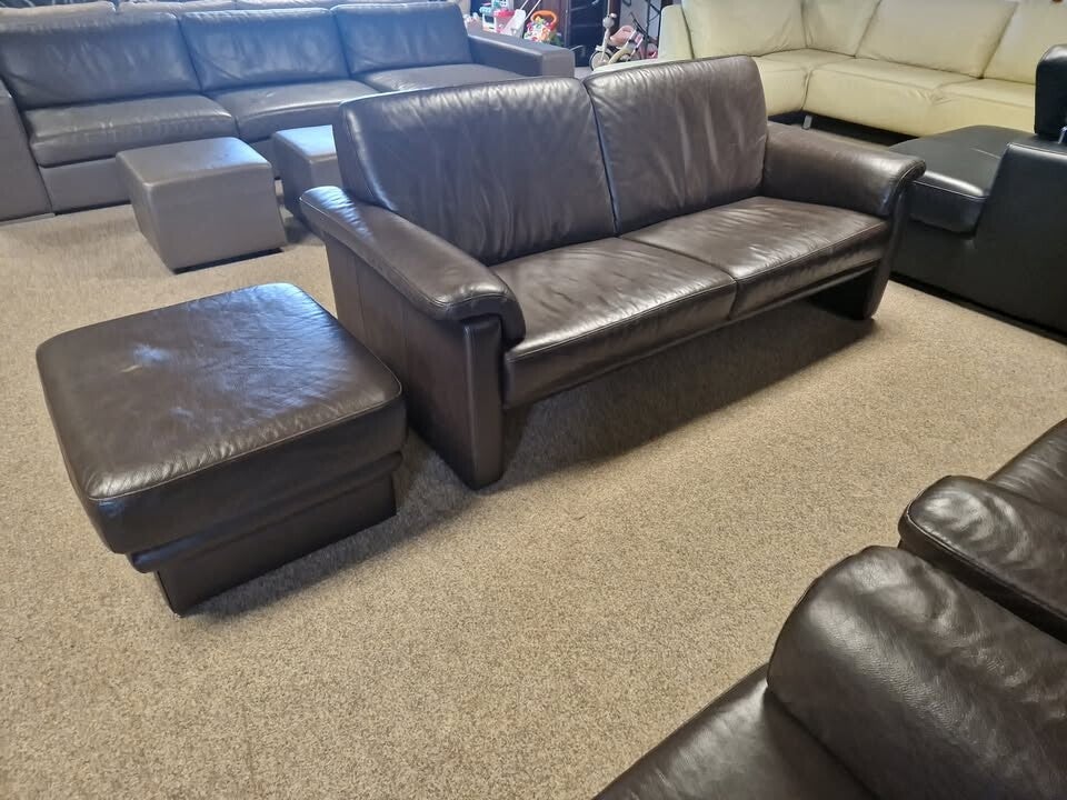 BRUINE BUFFELLEDEREN SALON MET POEF 3+2+1 ZIT