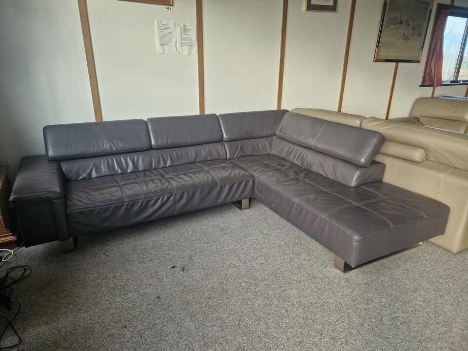 TAUPE BUFFELLEDEREN HOEKSALON MET RUGRELAXEN